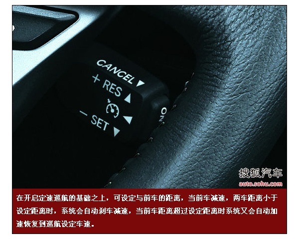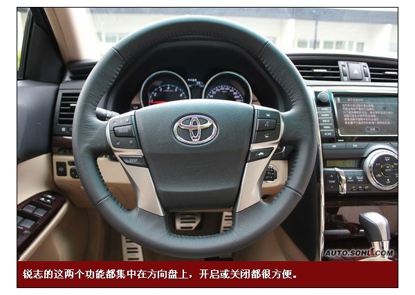 另外,在开启定速巡航的基础之上,我们还可以设定与前车的距离,当前车减速,两车距离小于设定距离时,系统会自动刹车减速,当前车距离超过设定距离时系统又会自动加速恢复到巡航设定车速。这项配置适合高速公路驾驶的状况,能够减小驾驶员的驾驶强度。锐志的这两个功能都集中在方向盘上,开启或关闭都很方便。