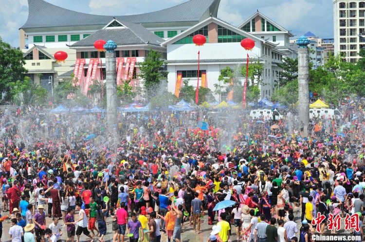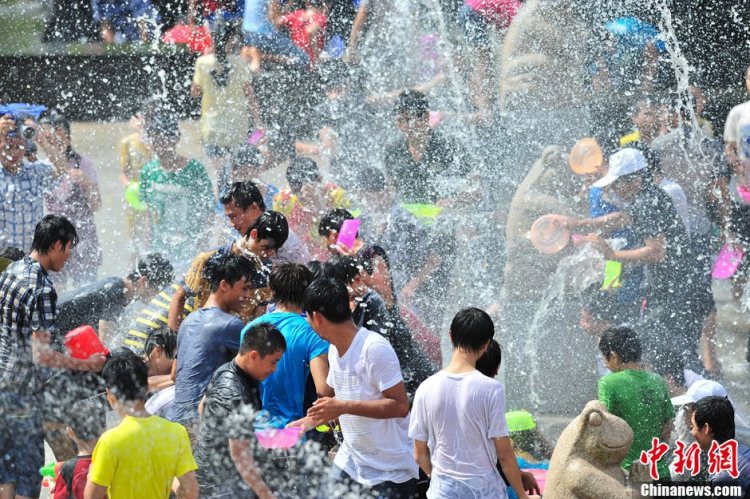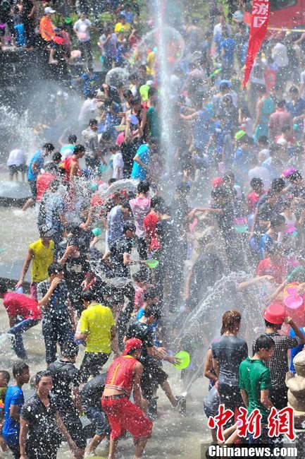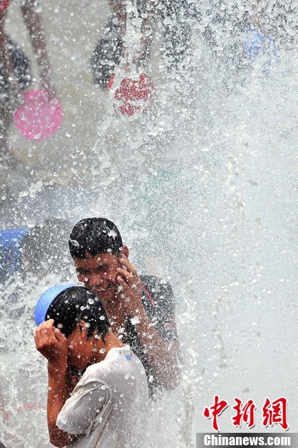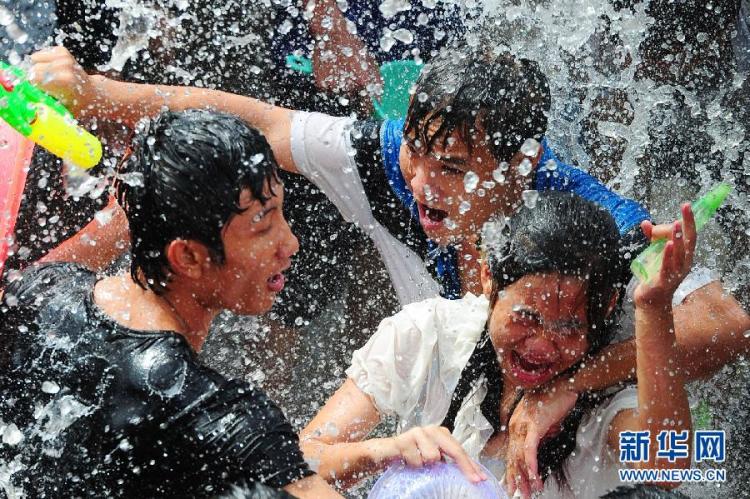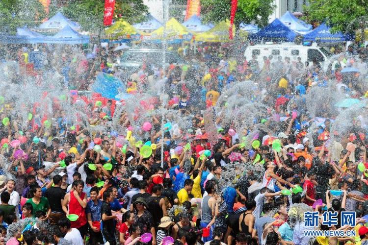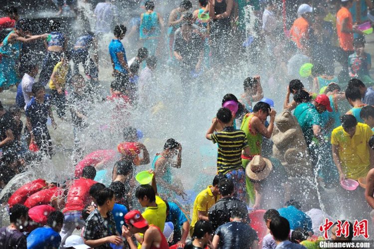 8月23日,正值中国传统节日“七夕”节,一年一度的“中国海南七仙温泉嬉水节”在海南保亭黎族苗族自治县七仙广场盛大开幕,引万人嬉水狂欢。中新社发 骆云飞 摄