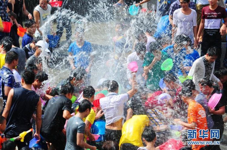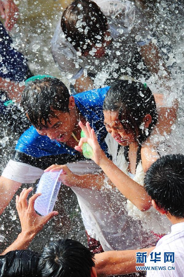 8月23日,人们在嬉水节上互相泼洒祈福之水。当日是七夕,也是海南七仙岭下黎苗同胞们一年一度的民间传统节日——嬉水节。在海南省保亭黎族苗族自治县,人们载歌载舞,互相泼洒祈福之水,祈求风调雨顺,幸福安康。新华社记者侯建森摄