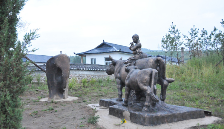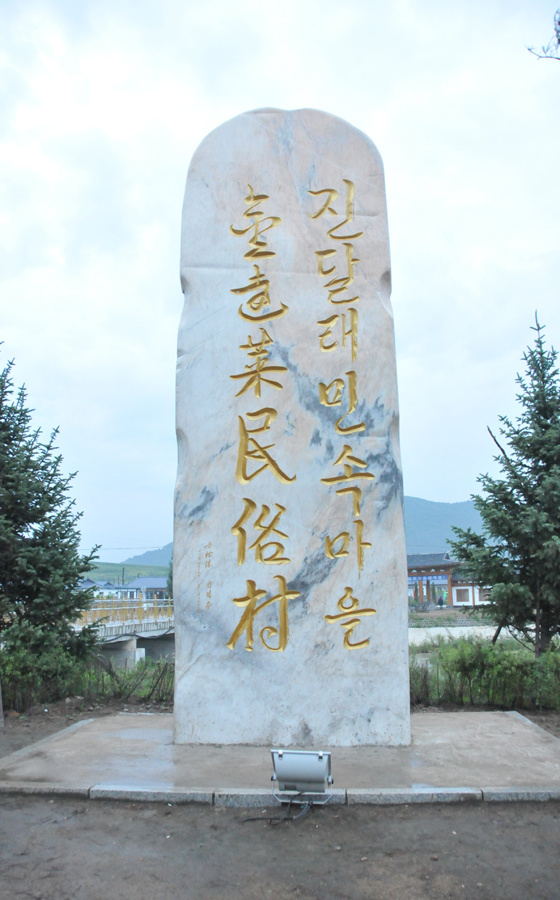 金达莱民俗村中的烈士碑。在抗日战争、解放战争和抗美援朝战争过程中,曾经有两万余名优秀的延边儿女献出了宝贵的生命。新华网戴琳凌摄