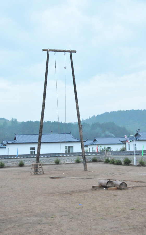 金达莱民俗村广场上耸立着一个巨大的秋千架。朝鲜族是个爱好体育运动的民族,压跳板和荡秋千是朝鲜族妇女最喜爱的民间传统体育运动。新华网戴琳凌摄