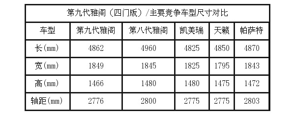 尺寸的减少将会是雅阁这次换代最牵动国人神经的一个改变,肯定会然很多人担心其空间表现因此大打折扣;但是,我们不妨先看一下下面的这份对比表格:
