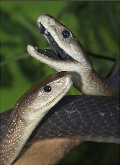 黑曼巴蛇既是世界上第二长的毒蛇也是地球上最快的蛇。它的平均长度为8.2英尺而且能够以每小时14英里的速度移动。如果黑色是死亡的象征,这种蛇的颜色很适合,退一步说就是它的咬伤是致命的。黑曼巴蛇毒液的半数致死剂量为0.05毫克,这就意味着死亡通常是由呼吸衰竭和心力衰竭导致的,通常在30分钟到1小时内发作。幸运的是,一种抗蛇毒血清现在已经降低了这种咬伤的致死率,治疗效果接近100%。巨大、快速而且致命,黑曼巴蛇毫无疑问是世界上最致命的毒蛇之一。