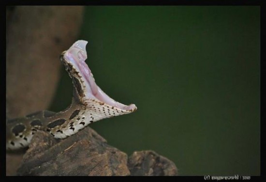 蝰蛇是另一种印度“四最”,世界上最危险的蛇之一。它不仅拥有最致命的毒液,半数致死剂量为0.03毫克,它也通常被发现于人类居住区,因为它被啮齿动物所吸引。户外工作者处于最危险的境地,因为它喜欢田野以及空旷的灌木区域。在缅甸,蝰蛇要承担蛇咬伤致死事故90%的责任。它咬伤所产生的毒液会导致肿胀、大出血、呕吐和细胞坏死。在其它症状中,死亡或许是由肾脏、呼吸或者心力衰竭导致。而且没有一种抗蛇毒血清能够治愈蝰蛇的咬伤,因为蝰蛇发现的区域决定它的毒液拥有不同的特性。比如说,印度蝰蛇的毒液有毒害神经的效果,而泰国蝰蛇的毒液则会破坏血液的凝固能力。