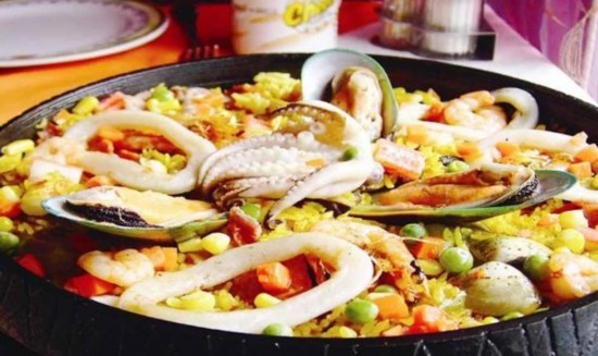 47.西班牙海鲜拌饭。大海冲刷着你的脚,和煦的微风吹动桌布轻拂你的腿,一盘热气腾腾的海鲜拌饭摆在你的面前。小虾、龙虾、贻贝和墨鱼,配以白米饭和各种香草,加上油和盐新鲜烹制出这款瓦伦西亚美食,会立即带给你一种假日风情。
