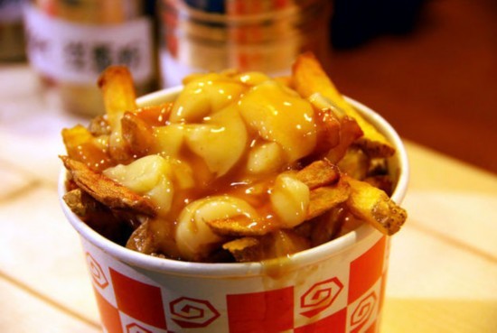 44.加拿大普丁。浇上奶酪凝乳和棕褐色肉汁的炸薯条。听起来有点恶心,看起来甚至更糟,但吃上一口之后,汤汁、奶酪和炸薯条混合的香味会让你把它吃个精光。我们的加拿大朋友坚决主张在凌晨3点“几杯”啤酒下肚之后再享用它,效果最佳。