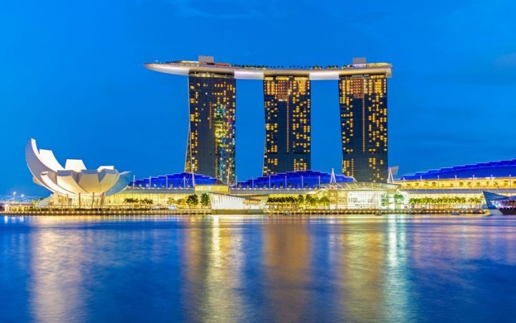 金沙酒店楼顶的吧台可以看到新加坡壮观的景色。不幸的是,我们却不能说这家酒店看起来很壮观——它看起来就像是太空时代的冲浪板。
