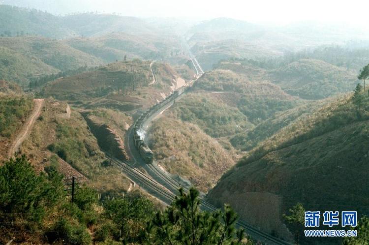这是穿山越岭的衡广铁路双线(1986年摄)。1988年,京广铁路的衡(湖南衡阳)广(广东广州)段复线完工,复线工程全部建成。新华社记者 陈学思 摄