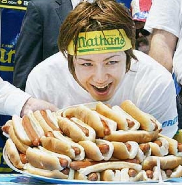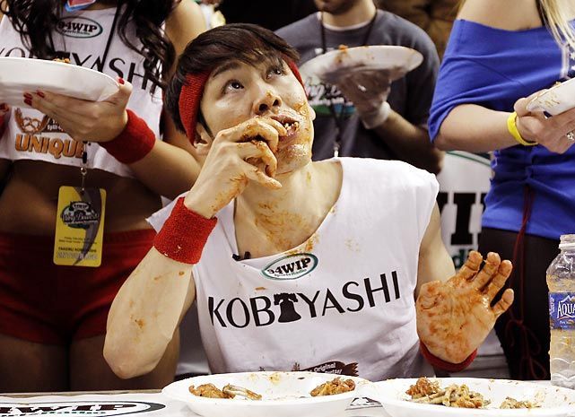 小林尊是日本籍的大胃王,曾在美国纽约的“国际吃热狗大赛”连夺6届冠军。直到2007年败于Joey Chestnut的66个热狗,结束冠军连霸的纪录。2012年2月,小林尊在宾夕法尼亚州费城举行的“鸡翅碗”比赛中,以半小时狂吞337只鸡翅的成绩夺冠,并刷新了这一赛事的纪录。这是现年33岁的小林尊首次到费城参加吃鸡翅赛事。当天的比赛吸引了近两万名观众到现场观看。