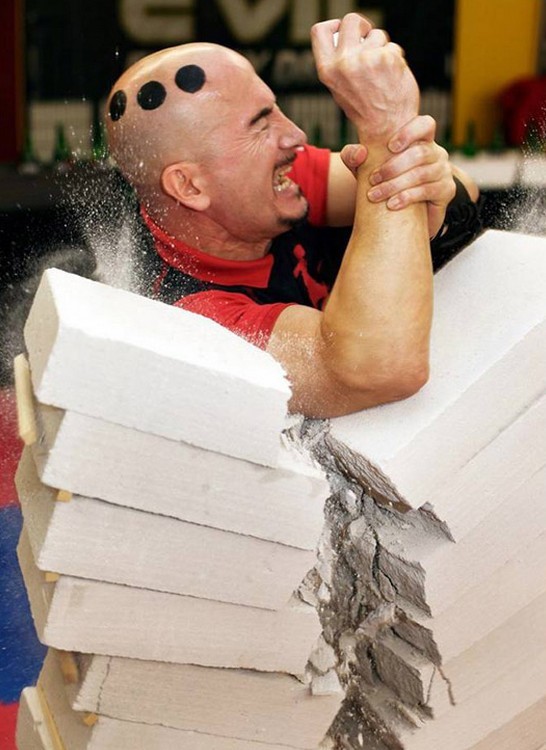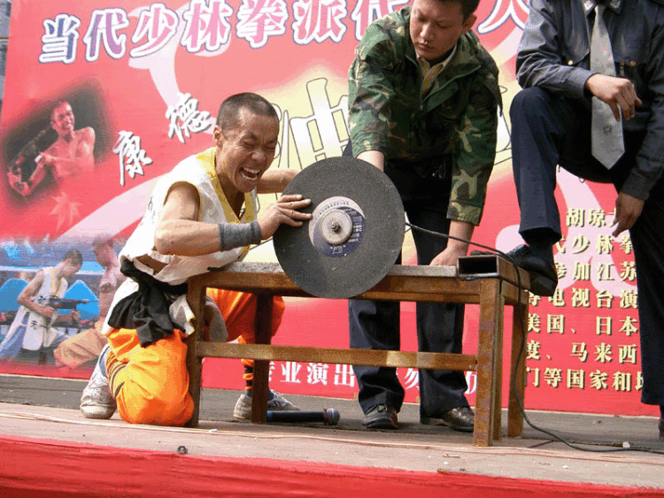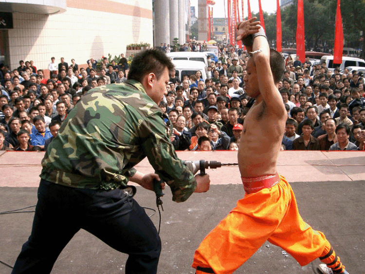胡琼,祖籍四川省,38岁,被吉尼斯誉为“中国铁掌第一人”和“中国金钟罩铁布衫第一人”,江湖人称“铁罗汉”。他从小酷爱武术,8岁进入河南嵩山少林寺学习武术,成为少林俗家弟子,直到27岁才出山,现为国家一级武术教练,武术黑带七级。擅长硬功特技50余种、武术套路30余种。拿手绝技有电钻钻人体、头弯钢板、头撞石碑、身断木棍、钢枪刺喉、后项碎石、腹卧钢叉、飞针穿玻璃等。