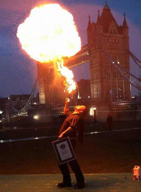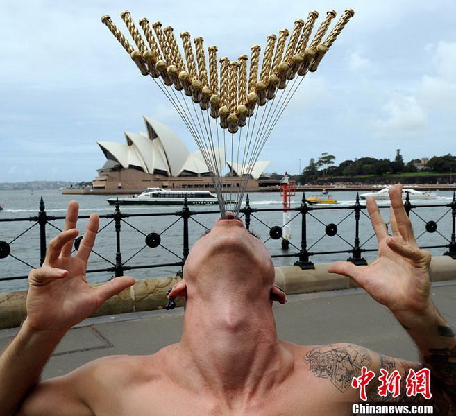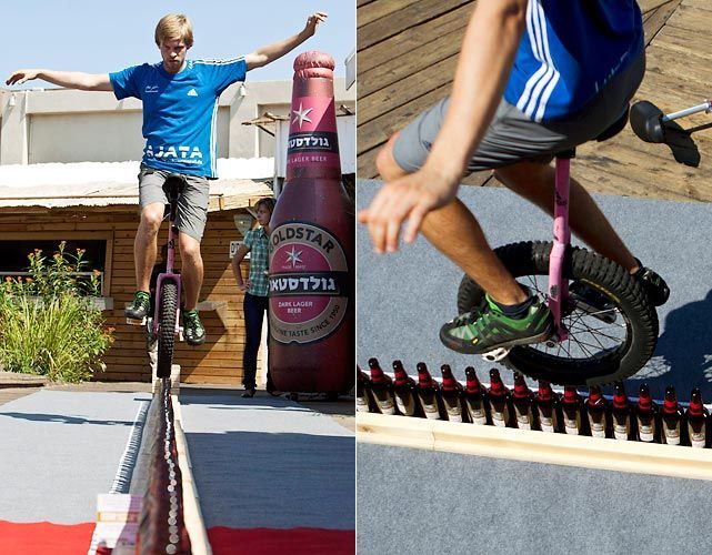 德国人Lutz-Eichholz,在以色列特拉维夫创造了一项新纪录,骑独轮车从127个啤酒瓶的瓶口一路骑过,总长度8.93米。