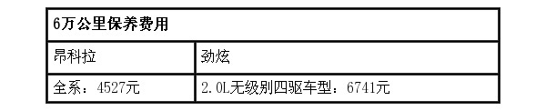 昂科拉的常规保养费用全系都是同一个价位4527元,而劲炫为6741元,正如我刚才说说,昂科拉的保养价格从长远来看的确是比较有优势。