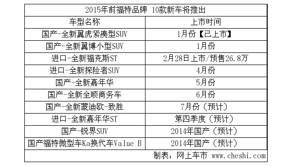 不久前,福特翼虎SUV悄然上市,敲响了2013年福特集团新车的“战鼓”。翼虎SUV上市后,福特品牌今年将会陆续推出多款新车,而据网上车市网站了解,在2015年以前,包括旗下的林肯品牌在内将会有15款新车入华。