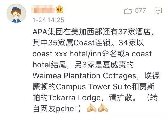 对于游客而言,许多网友都表示,强烈支持国家旅游局。还有网友贴出了APA集团在其他国家的连锁酒店名称。
