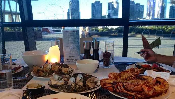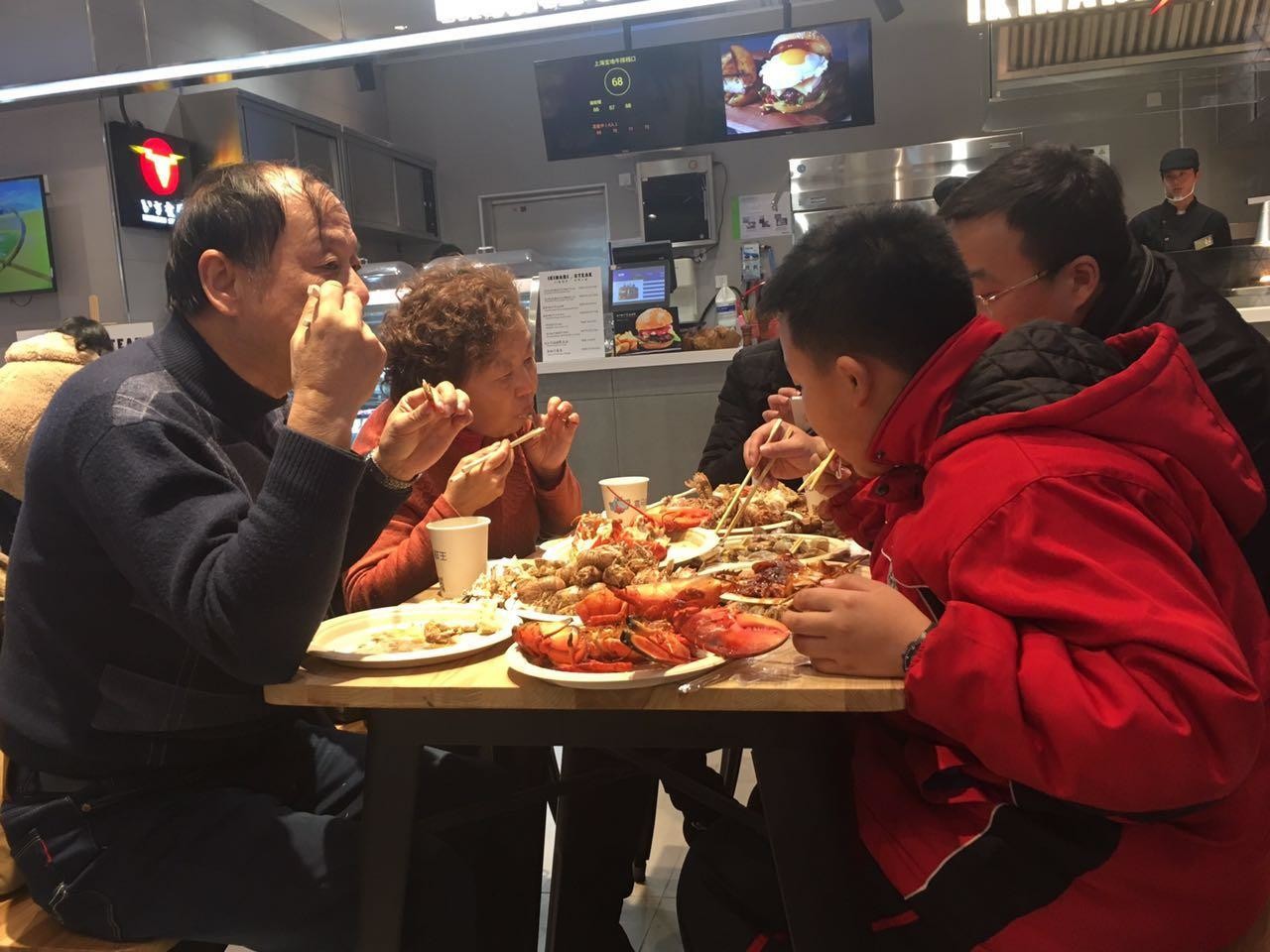 趁着加工的间隙,李先生又在海鲜吧点了一份烤鱿鱼,到对面牛排区点了一份现做的M5澳洲牛排;再让太太分头到日式料理档买了小孩喜欢吃的寿司,以及在质馆咖啡摊买了果汁和伯爵茶;爷爷奶奶就近找了个桌子坐下等待海鲜吧的叫号。一顿饭下来,花了一千元不到,李先生说:“用平民的价格就能吃到高档的海鲜。”