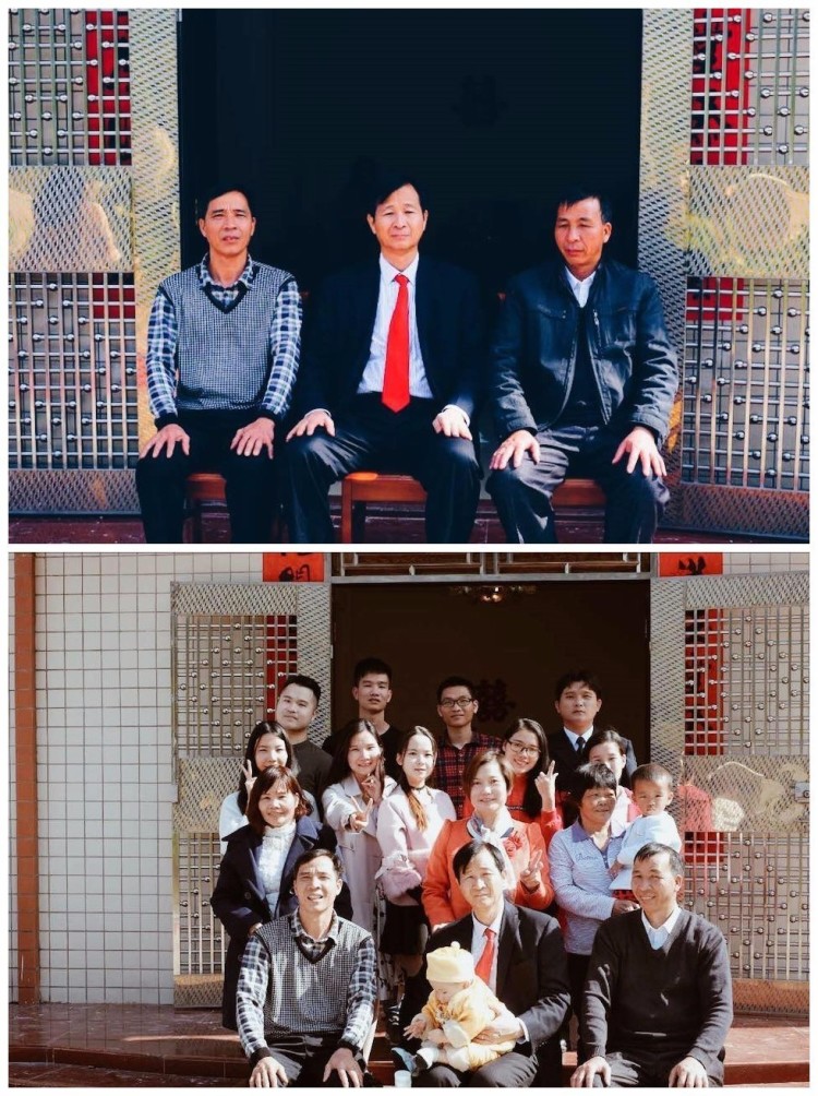 2017-01-28,广东茂名。上面照片中的是三兄弟,他们自幼家贫,丧失双亲。年轻时去深圳闯荡,离开家乡二十多年,靠着自己的努力与智慧在深圳站稳脚跟,成家立业,把家族兴旺起来。作者:Zoey~祖儿