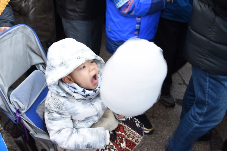2017-01-30 ,辽宁沈阳。一名小朋友举着棉花糖,开心地吃起来。作者:本哥