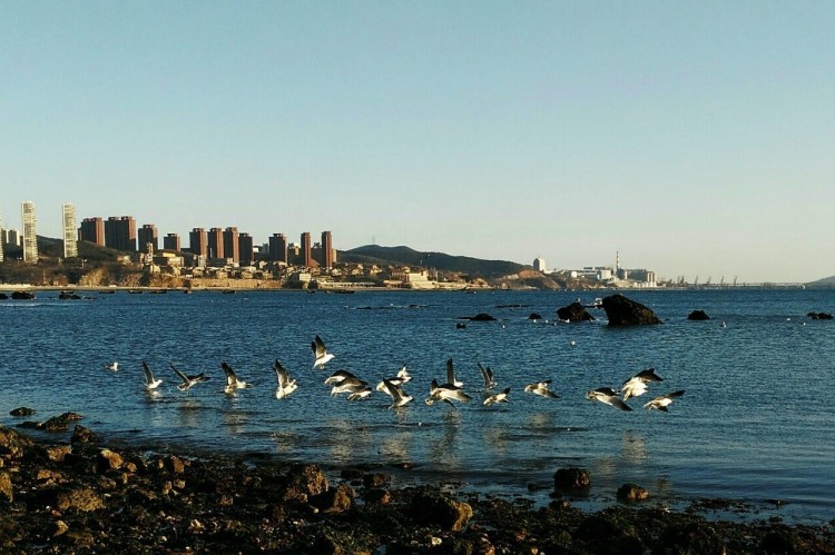 2017-01-30,辽宁大连。大年初三,一群海鸥正在海边飞翔。作者:塬上老汉