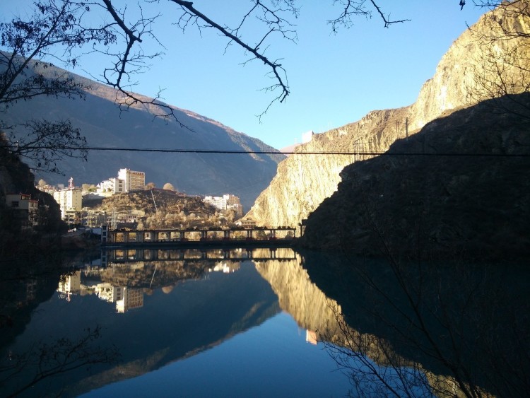 2017-01-26,四川小金县。三关桥电站水库清晨水中倒影。作者:锐翔