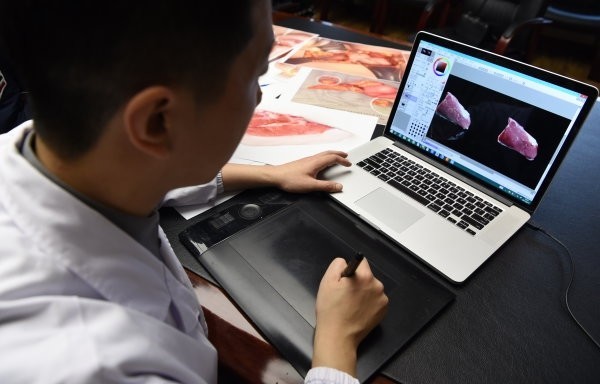 所以周舒扬的医学插画也有着自己的风格,特别细致。甚至国外医学插画中不需要表现出的细微之处,周舒扬都会表现出来。“因为我觉得器官或组织的美妙,就是在最细微的人体肌理之上。”