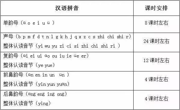 孩子们进入小学以后,一般先要经历3~4周的“学习准备期”,逐步适应小学生活。之后,便进入5~6周集中学习汉语拼音的阶段,这一阶段通常在50课时左右。