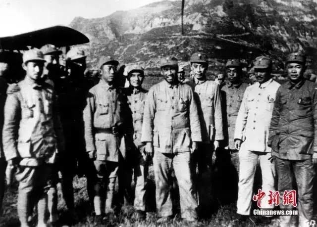 1938年,邓小平、朱德、周恩来、彭德怀、贺龙等人合影。