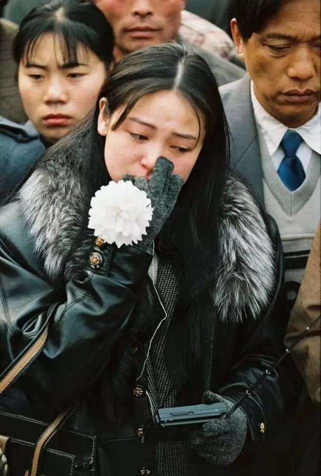 △1997年2月25日,来自贵州的女大学生手持收音机收听追悼会实况。