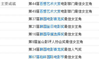 在韩国影视圈,她一直是演技派代表,出道以来基本横扫了各大演技赏。