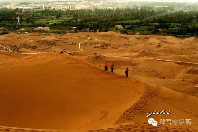 距离县城2公里处的鄯善沙漠风景区,以丛集大漠风光和江南秀色为一体,沙漠和绿洲只有一线之隔,一步之遥。