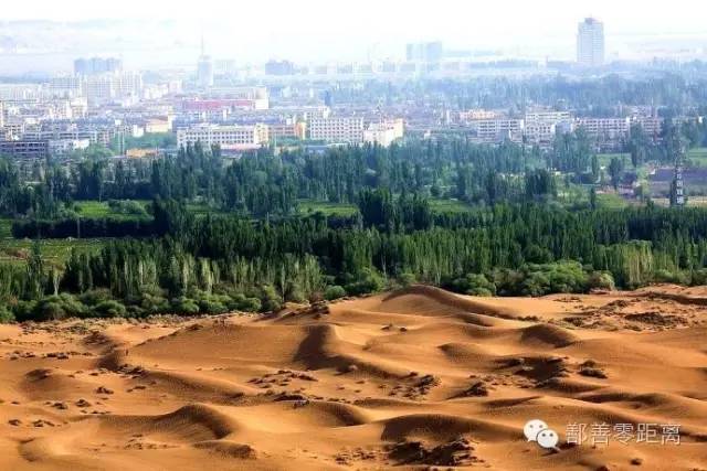 鄯善沙漠是国内乃至世界罕见的与城市零距离的沙漠,黄沙与绿树紧密相伴,绿树与黄沙千年厮守。