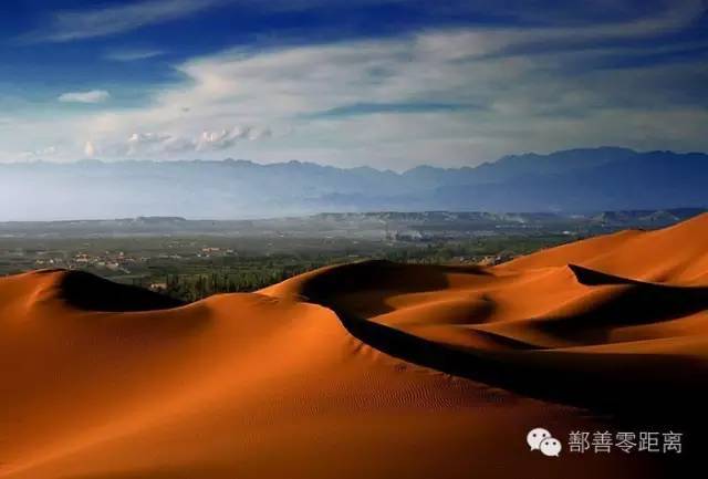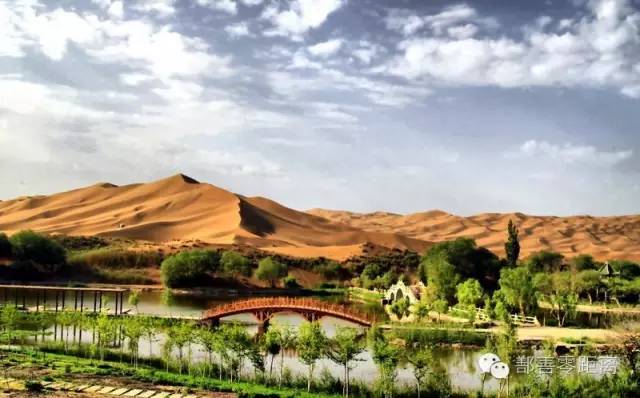 绿洲的边界多年来变化不大,没有明显的向外扩展的趋向,一边是大漠风光,沙潮起伏,一边却是江南秀色,小桥流水,绿树成荫。