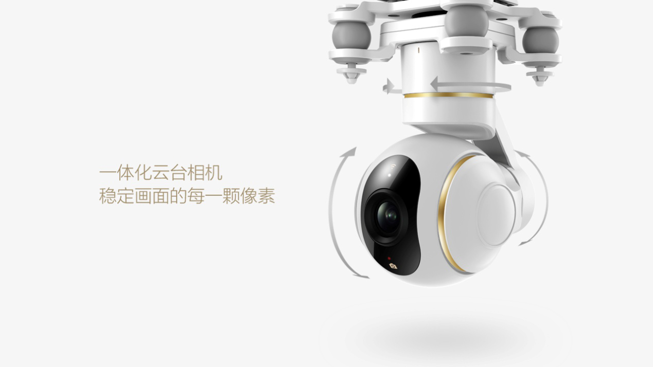 小米无人机4K版的相机配备3轴无刷自稳定云台,内置3轴陀螺仪、3轴加速度计和3轴无刷电机驱动器,每秒钟2000次的数据采集与运算补偿。
