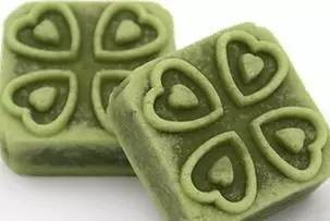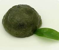“青团”以稔叶汁与青麦汁揉和的糯米为皮面,透着植物特有的清香,糯韧绵软,怡心养神。有玫瑰豆沙及香浓奶黄两种口味。
