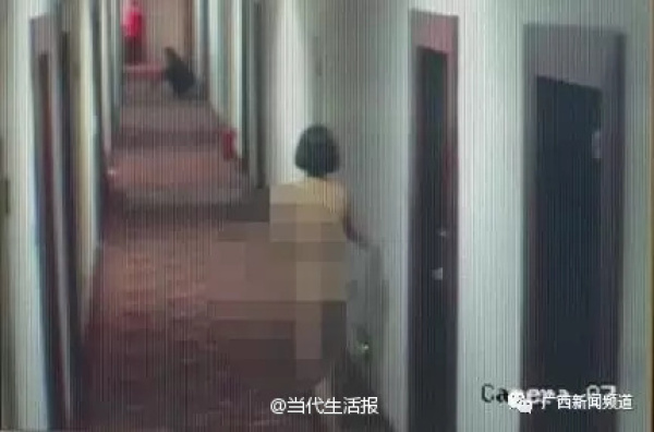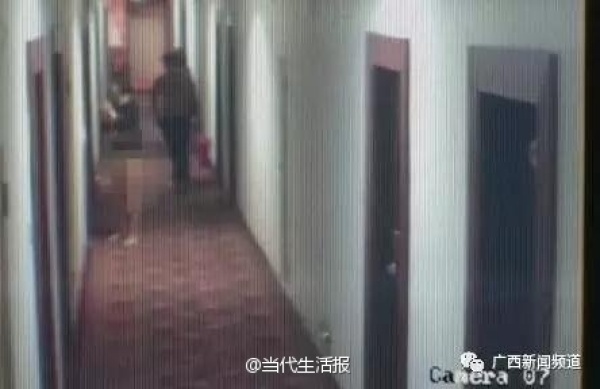 梧州市公安局新兴派出所邓宇峰:"首先是那个男子光着身子从812房走出来,她的女朋友也光着下身也跟着走出来,他们两个就在走廊里面来回走动,然后我们就通过视频看到,那名男子就走到805房的门前,用力一脚把房门踹开了,然后男子就走进去了,他的女朋友也跟着走进去,过了一会儿,他的女朋友就独自走出来了,就在走廊来回走动。"
