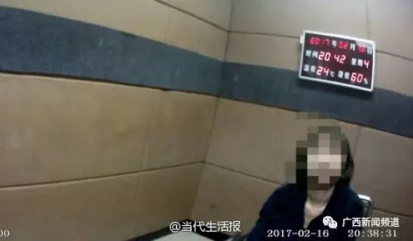 梧州市公安局新兴派出所邓宇峰:"她以为房门就是镜子,她对着镜子脱换衣服,也拿起她的化妆品对着房门在那里化妆,估计就是幻觉产生的后果吧。"