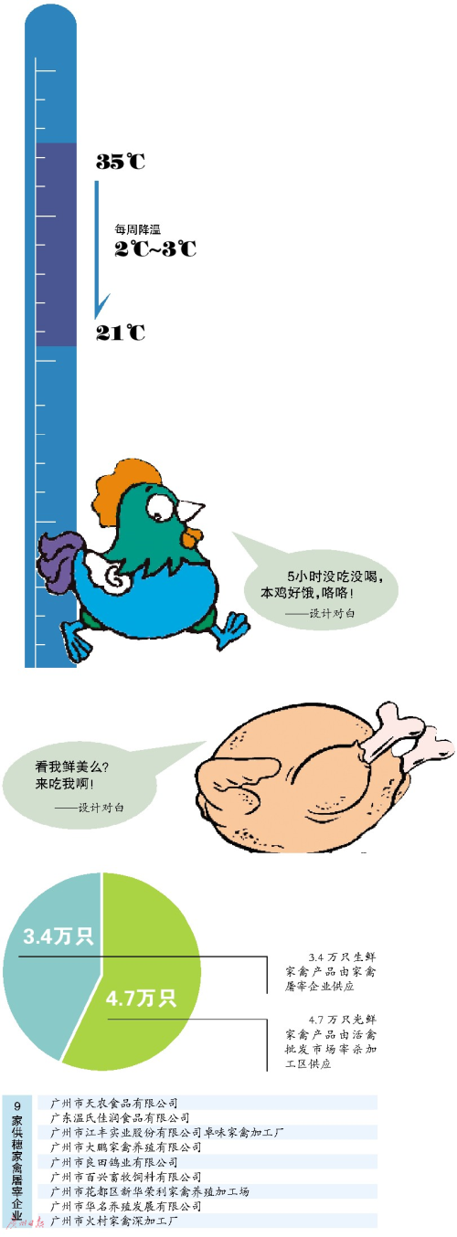 目前,广州生鲜上市的家禽产品包括生鲜家禽产品和光鲜家禽产品,日均供应量约8.1万只。