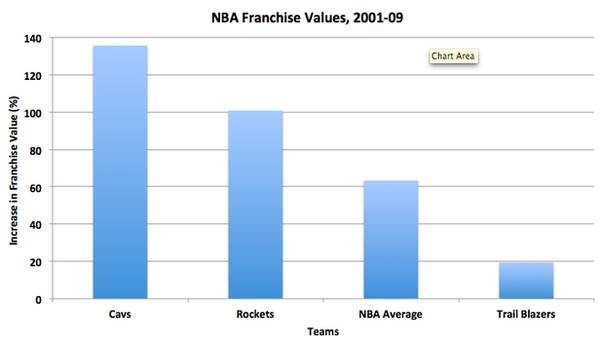 ▲ 2001-2009年,火箭队的球队价值增长率超过联盟平均水平。