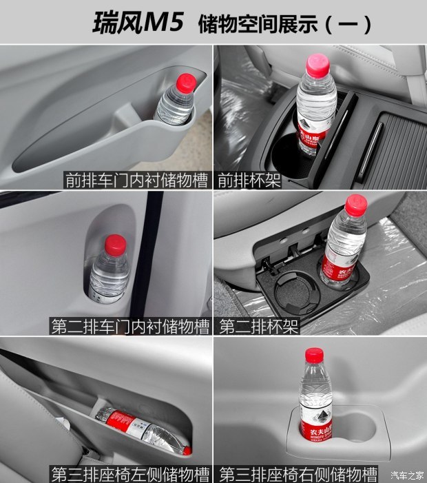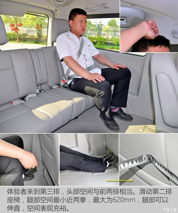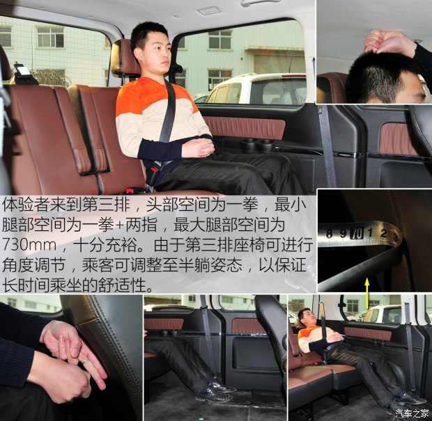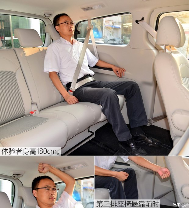 座椅方面,瑞风M5的头部空间是最大的,其次灵活度表现也很不错,第二排座椅同样可旋转360°。主副驾驶座椅电动调节、座椅加热、后排液晶屏也都是这四款车型中的唯一,舒适度与便利度的综合表现是值得肯定的。最后排座椅与风行CM7一样,由两个较大的座椅拼凑成三个位置,影响了中间位置的舒适度,同时靠背的高度也比较矮,对乘客的背部支撑不太好。