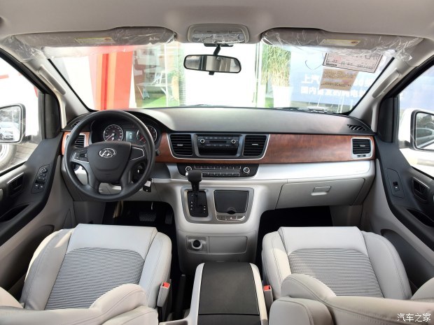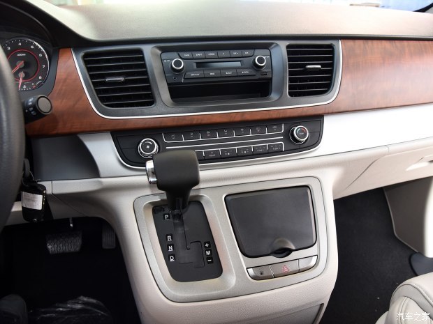 内饰采用对称式布局,整体造型简洁大方。黑色的中控台以仿木纹板装饰,营造出了商务车应有的沉稳与大气,中控区的金属拉丝面板则为其增添了一份灵动。