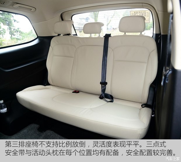 风行CM7的后排乘坐空间是四款车型中最大的,座椅也有较高的灵活度,第二排座椅支持360°旋转,车辆在驻车时可供会议与娱乐使用;同时CM7所配备的真皮座椅、后排防紫外线/隐私玻璃,这些也都能体现对乘客的关怀。不足的是第三排座椅由两个较大的座椅拼凑而成,中间位置没有活动头枕,靠背上还有两个折叠扶手,这会影响到乘客的舒适度与安全性。