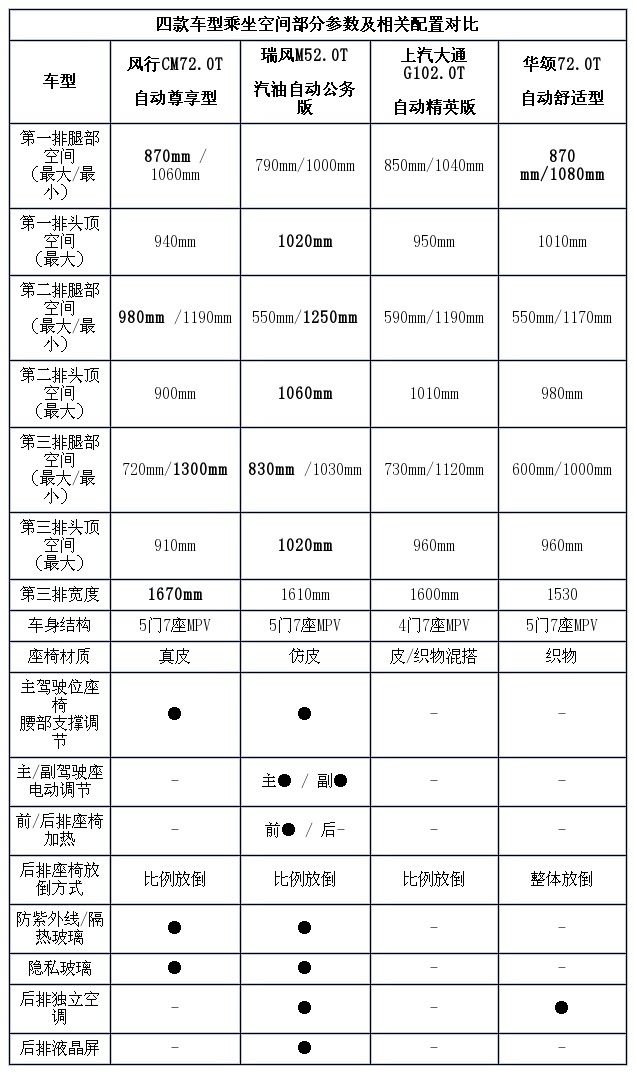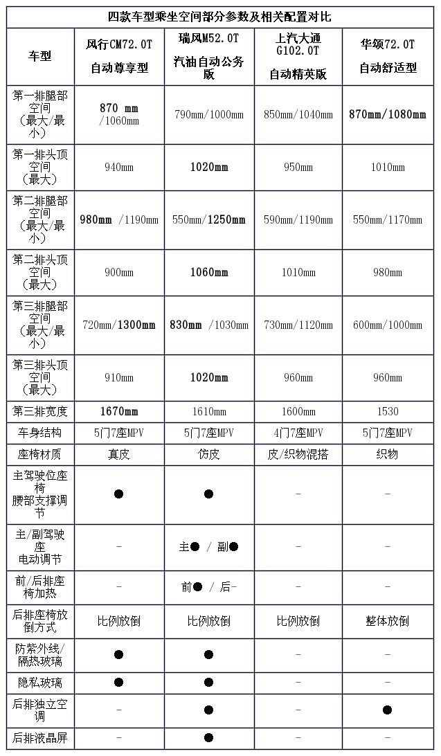我们此次海选的这四款MPV车型,均来自于中国品牌,相比合资品牌在价格方面更为实惠,价格均在20万元以内,定位商务接待。车内空间、后排的舒适度/便利度是海选主要衡量标准,因此:
