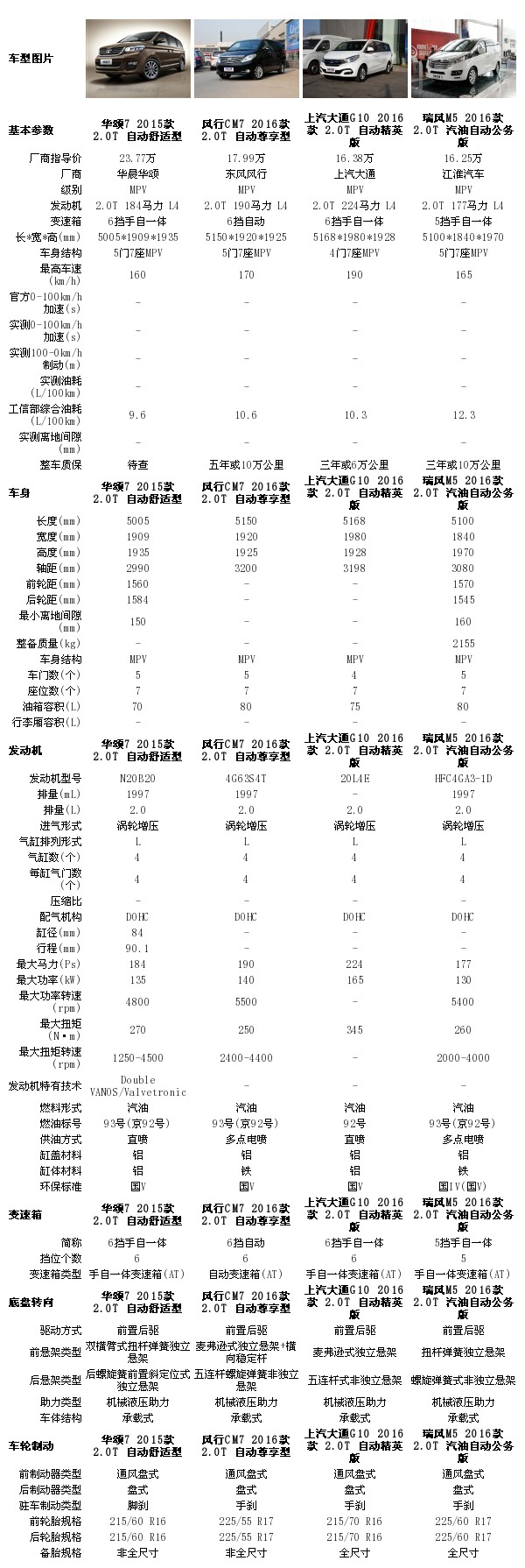 以上的推荐是按照车型的综合表现来排序的,在您具体选车过程中,建议多结合个人的用车需求。比如预算较少,对空间要求又不是特别高的用户,瑞风M5与上汽大通G10就是更合适的选择,而合适的才是最好的。(文/汽车之家王鹤璇)
