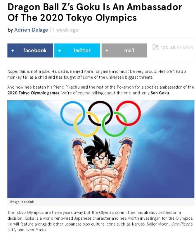 近日,一些外媒网站上流传的消息称,“七龙珠孙悟空”或将成为2020东京奥运会的形象大使之一。