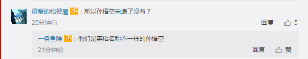 但也有一些网友说,日本的这个“悟空”并非中国人家喻户晓的孙悟空,英文名都不同。