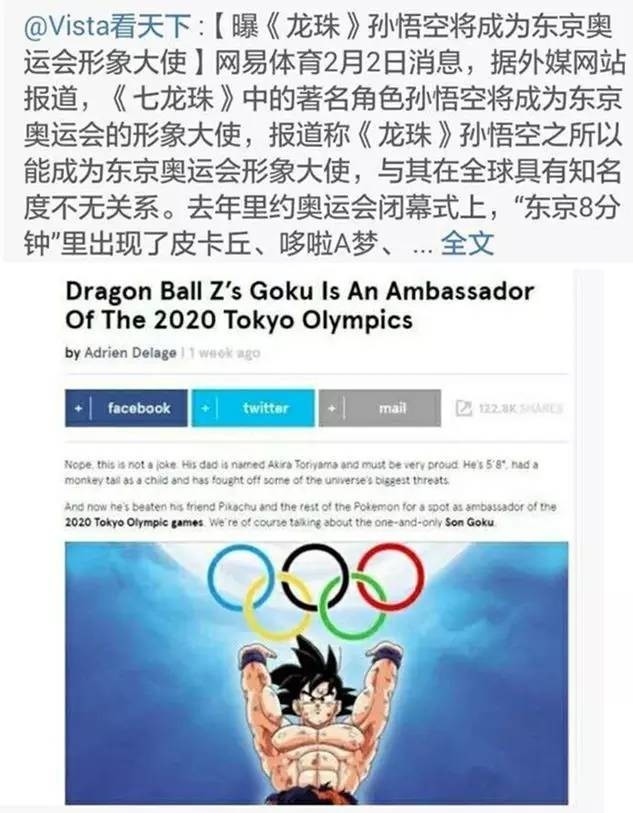 这则消息一出,网友们坐不住了:孙悟空不是咱们中国的吗?怎么被日本堂而皇之当成吉祥物了?东京奥运会和《龙珠》是不是有侵权之嫌?
