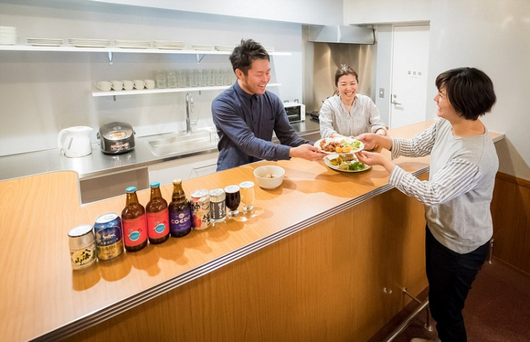 在这个分享“卧室”的旅馆里,有一层仅提供给女士,加上其他三层,共计可容纳78位客人。此外,该旅馆设有两间以窗帘与其他房间分隔开来的雅室,并且有共享的厨房、客厅、浴室及洗衣间。