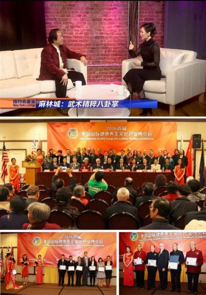 他应美国中文电视台邀请到《纽约会客室》接受采访,主持人问道:“麻先生,您认为中国武术应该怎样向世界推广?”麻林城说:“弘扬中华民族文化,传播国粹,是每一位中国人,特别是每一位武术爱好者的义务和责任。我作为其中的一名普通武术爱好者,当然义不容辞。我认为其法有四,一要靠媒体大力宣传中国武术的精神和价值;二要靠政府有关部门拿出一些资金,向世界各国大量派遣有实力的武术教练,培养更多的武术爱好者,普及中国武术;三要靠政府有关部门加大力度支持国外武术团体有计划、有步骤地开展武术教学交流工作;四要加大武术申奥力度,国人包括体育人、武术人同一口号:武术奥运、奥运武术!我相信,只要大家一起努力,不说假话、空话,从实际出发、做实事,武术成为奥运项目指日可待!”为此,麻林城率先垂范,在美国成立了以传播中华文化养生为主题的“全球养生长寿协会”,和由武术唱主角的“太极拳八卦掌武术院”,并且在2016年10月成功举办了“美国首届国际健康文化产业博览会”,这次活动上邀请了传统武术最高段夏柏华老师,中国传统武术非物质文化遗产人物张全亮和钟振山老师,以及本次活动中国区负责人麻丹凤女士等三十位中国特邀嘉宾,通过这次活动他要竭尽全力弘扬中国武术养生文化,一定要把中国武术养生文化推向世界,让中国武术养生文化造福全人类!