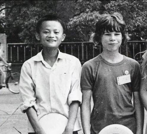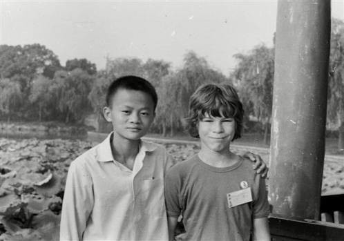 15岁的马云和澳大利亚小玩伴戴维·莫利摄于西湖边。