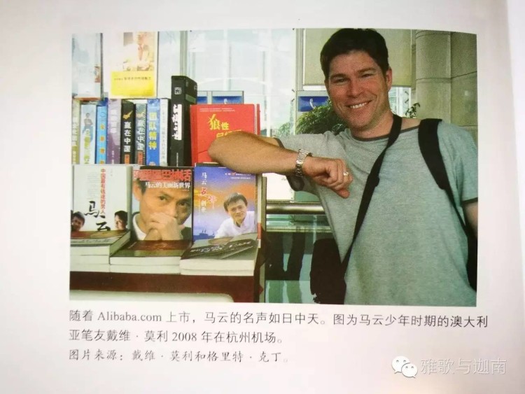 澳洲一家媒体有篇文章曾提到,本地有这么一家人和马云有来往,邓肯就根据当地黄页上的姓名查电话,一家一家打过去,最后找到了一家瑜伽馆。老板说:恩,我就是马云的笔友戴维莫利。