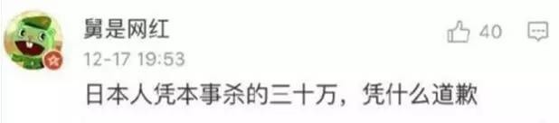 不过,就算它们真是水军也并不奇怪。毕竟耿直哥几天前就告诉过大家,中国的网络上长期存在着为数庞大的一群汉奸日杂,它们不仅在积极地为日本极右翼势力洗地,比如否认南京大屠杀,更经常跟疯狗一样去撕咬任何攻击日本极右翼的人。